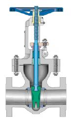 闸阀结构主要由阀体、阀盖、框架、阀杆、左右阀瓣、填料密封装置等组成。