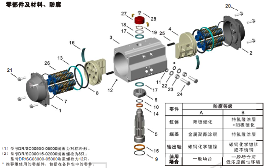 单作用气动执行器构造图
