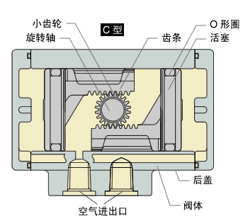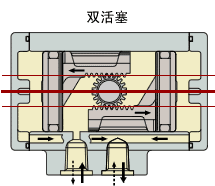 活塞中心轴和齿架及小齿轮轴位于不同的轴上,使活塞易产生倾斜力。