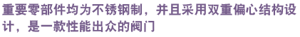 重要零部件均为不锈钢制,并且采用了双重偏芯(Double Eccentric)结构设计
